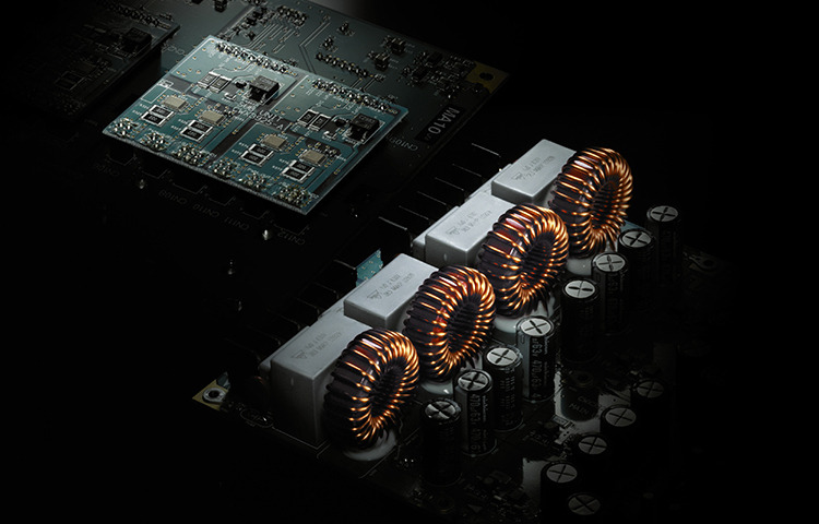 在功率級中,四個經過廣泛測試和聆聽開發的大容量電解電容器可提供強勁、響應迅速的能量輸出。